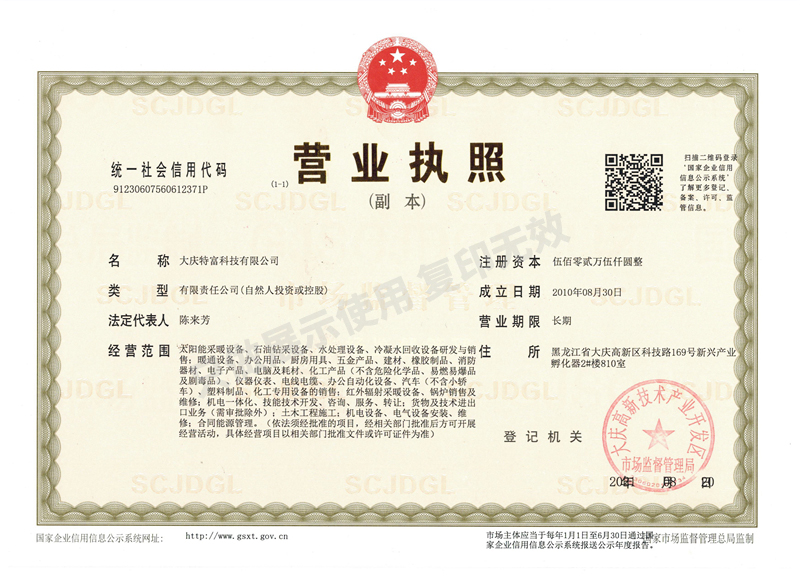 2010年,大慶特富科技由一支年輕富有朝氣的創(chuàng)業(yè)團(tuán)隊(duì)為了一個(gè)共同的理想—致力于成為工商業(yè)、市政建筑熱能領(lǐng)域節(jié)能技術(shù)專(zhuān)業(yè)服務(wù)及生產(chǎn)型企業(yè)而組建,主要從事能源革新產(chǎn)品的引進(jìn)、研發(fā)、設(shè)計(jì)、生產(chǎn)、銷(xiāo)售、施工、托管于一體的科技型企業(yè)。